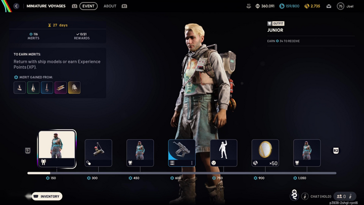 Прогрессия Миниатюрных Путешествий — 21 разблокировка, сгруппированная по типу (стоимость заслуг указана).